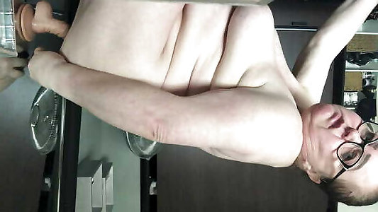 Body writing pale slut sucking and fucking blonde milf with huge suction cup dildos, spit roast fetish