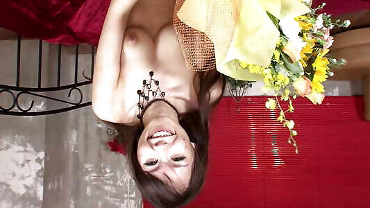 Ultra-cute Asian princess deep throating on two weenies with good mastery