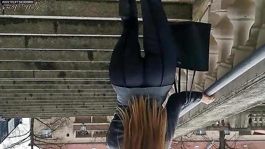 Bitchy lecturer Regina Noir elevates her miniskirt and demonstrates panties on the campus balcony