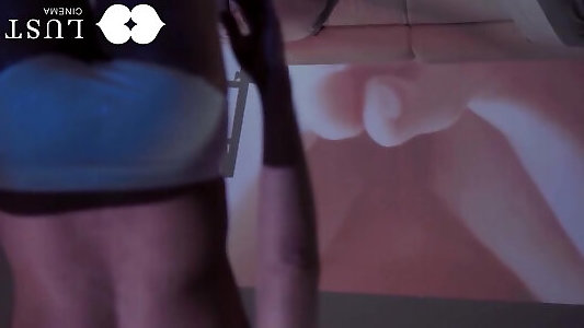 Rachel Starr engaging in a provocative act of face sitting and engaging in a sexual encounter against a wall.