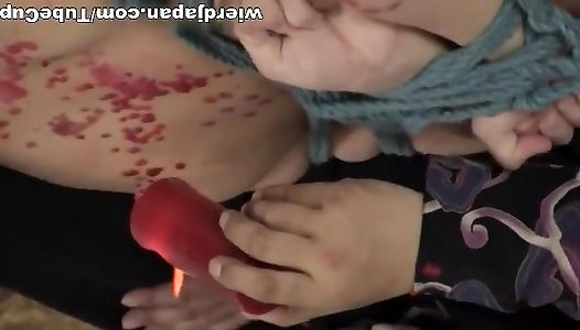 Ultra-kinky Japanese slavegirl gets wettened in super-steamy paraffin wax