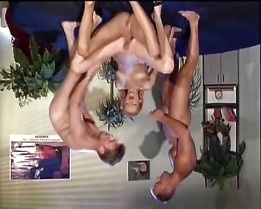 A hot blonde German babe gets fucked by three loaded and hard cokcs