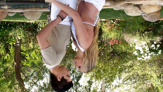 Wealthy light-haired housewife Julia Ann fucks janitor outside