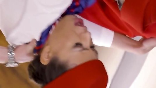 pink-haired schoolgirl amazing deep throat takes the sperm on the face