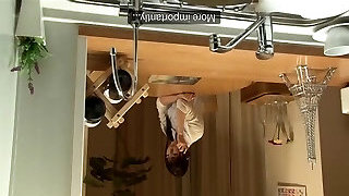 Long Haired Asian Bitch Get On Her Knees To Suck 2 Knobs