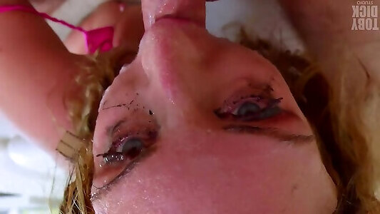 pink-haired schoolgirl amazing deep throat takes the sperm on the face