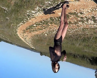 Curly brunette wearing lingerie with a big clit gets fucked and then fingered until impressive squirt