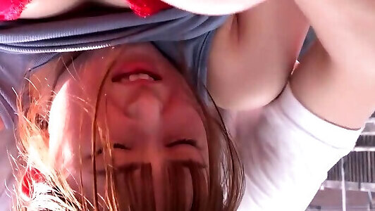 pink-haired schoolgirl amazing deep throat takes the sperm on the face