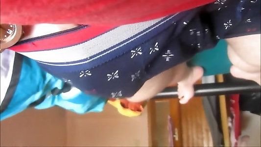 Inexperienced leans over and showcases no panty up miniskirt