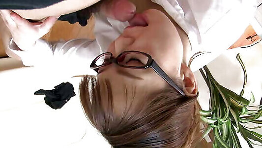 pink-haired schoolgirl amazing deep throat takes the sperm on the face