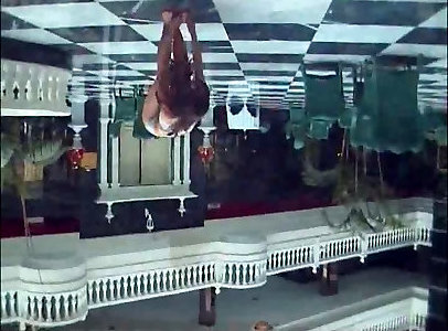 Blazing black-haired delivering a horrifying torture to a defenseless stud in restrain bondage with a smallish penis