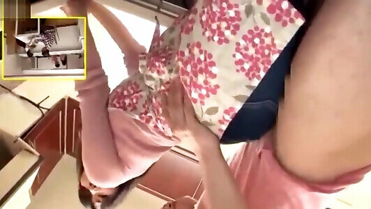 Nimble Japanese dark haired mega-bitch gets ass hole boinked rigid in the kitchen