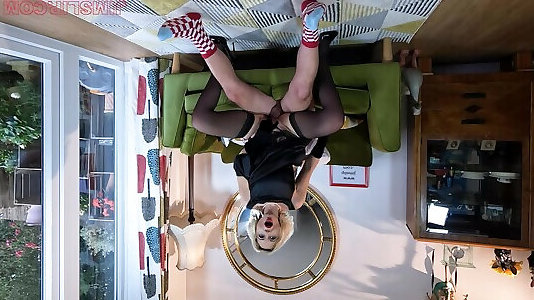 Cozy sole fetish lady puling slave to eat her cunny in femdom shoot