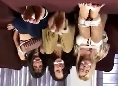 Wild ginger-haired dame gets abased lebiand food gangbanged