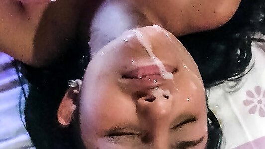 Weirdo drills freak biotch with red face and spunks on her crimson titties