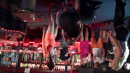 lil braunhaarige leckt an einer stange vor ihrem kerl
