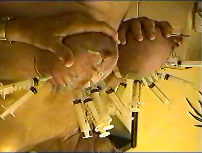 und hier ist meine geile sau mit ihren stattlichen titten, durchbohrt mit einer ganzen menge nadeln