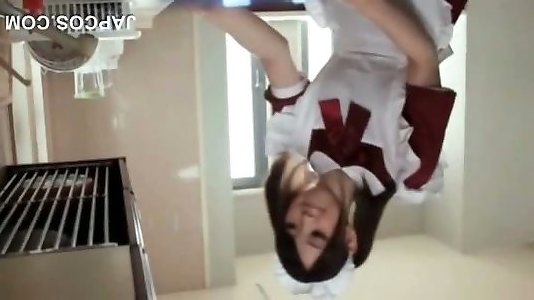 asian teen maid tut die reinigung zeigt bootie upskirt