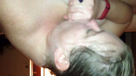 mollige rothaarige milf frisst den arsch des kerls, schluckt seinen schwanz und melkt ihn mit einer taschenlampe