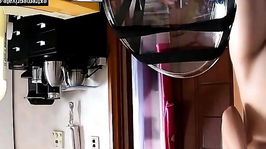 frau tollte steinhart mit der zunge, während sie in der küche geschirr spülte, und brachte sie zum spritzen, bevor ihre stiefmutter nach hause kam