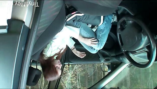 geile rothaarige weiße nymphe im auto masturbiert im freien