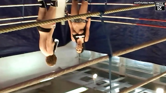 دو سوپر داغ خانمها دیدار برای مسابقه کشتی