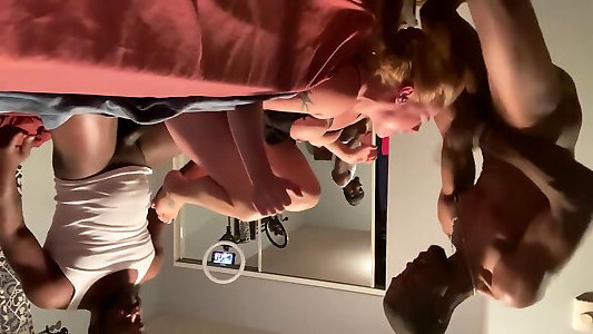 با موهای قرمز یاوه سرایی کردن بو داده و کوبیده خشن توسط بزرگ سیاه و سفید دیک