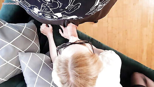 دختر ناز & 039; S شورت زیر میز و مملو از نونونوجوانان