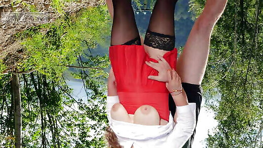 پستان گنده کیشا به ناله با صدای بلند در حالی که او سوار یک سنگ سخت دیک