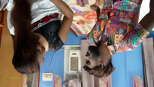 des filles asiatiques enchanteresses avec de petits nichons déballant sa culotte puis chatouillant sa vulve