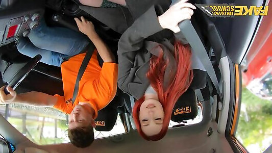 ginger honey gigi rouge suce la bite dans un camping-car et se fait insérer sa chatte à travers un trou de baise en collants