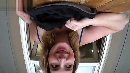 toucher sa bite dure pendant que je montre ma cameltoe dans un petit short sexy et un maillot de bain