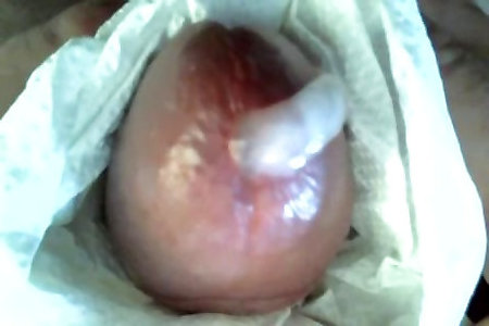 un énorme jet de foutre sur la chatte vêtue d'un caleçon sans entrejambe!!