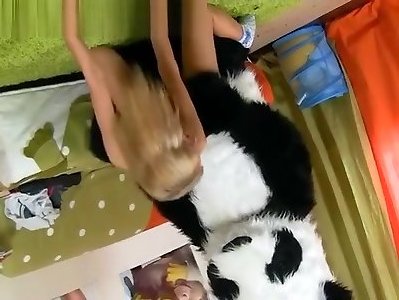 des filles asiatiques enchanteresses avec de petits nichons déballant sa culotte puis chatouillant sa vulve