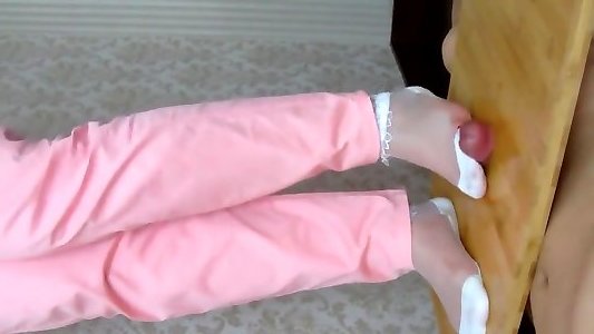un énorme jet de foutre sur la chatte vêtue d'un caleçon sans entrejambe!!