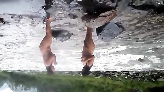 2 femmes matures indiennes se baignant nues dans la mer