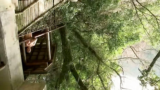 une étudiante de jav, chan, se promène à lextérieur sur un pont public