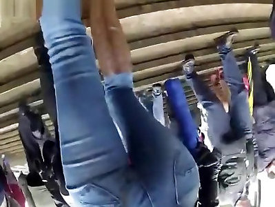 gal with taut jeans pantalons candid donk
