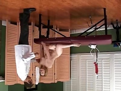 bbw avec une fente non-tissée se faisant des courbettes jusquà ce quelle se gave