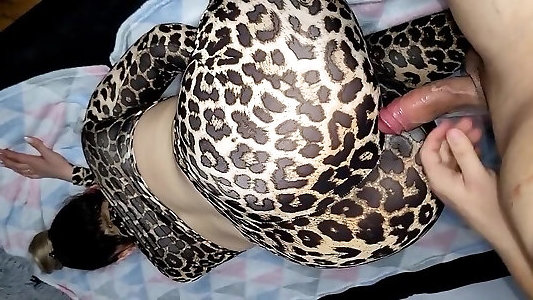 branlette anale et baise dans des leggings léopard brillants