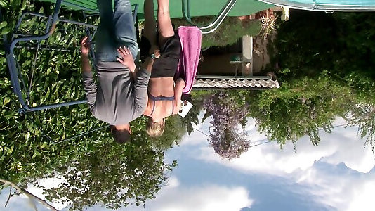 toucher sa bite dure pendant que je montre ma cameltoe dans un petit short sexy et un maillot de bain