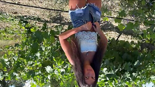 toucher sa bite dure pendant que je montre ma cameltoe dans un petit short sexy et un maillot de bain