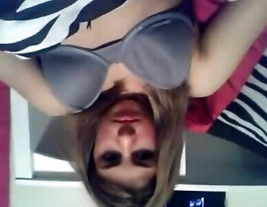une ado gf se tape la chatte avec une brosse à cheveux devant la webcam dans sa chambre