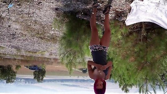 toucher sa bite dure pendant que je montre ma cameltoe dans un petit short sexy et un maillot de bain