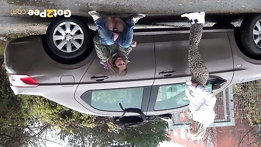 2 skanks européens pour la première fois en train de pisser derrière la camionnette