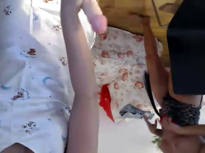 un énorme jet de foutre sur la chatte vêtue d'un caleçon sans entrejambe!!