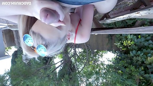 lexi lore, la belle-fille qui prend un bain de soleil, fait une pipe au bord de la piscine