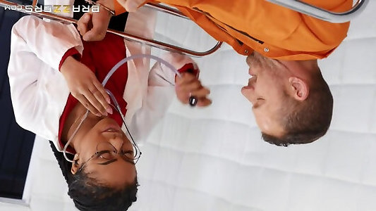 un médecin noir ultra-pervers et brûlant montre ses seins avant que le patient ne pénètre son mish