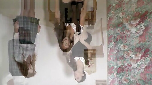 des filles asiatiques enchanteresses avec de petits nichons déballant sa culotte puis chatouillant sa vulve