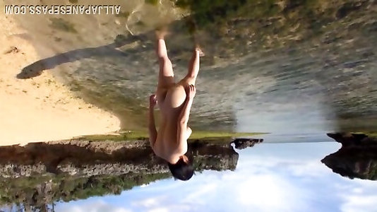 couguar asiatique aux gros seins montre ses seins et suce une bite sur une plage